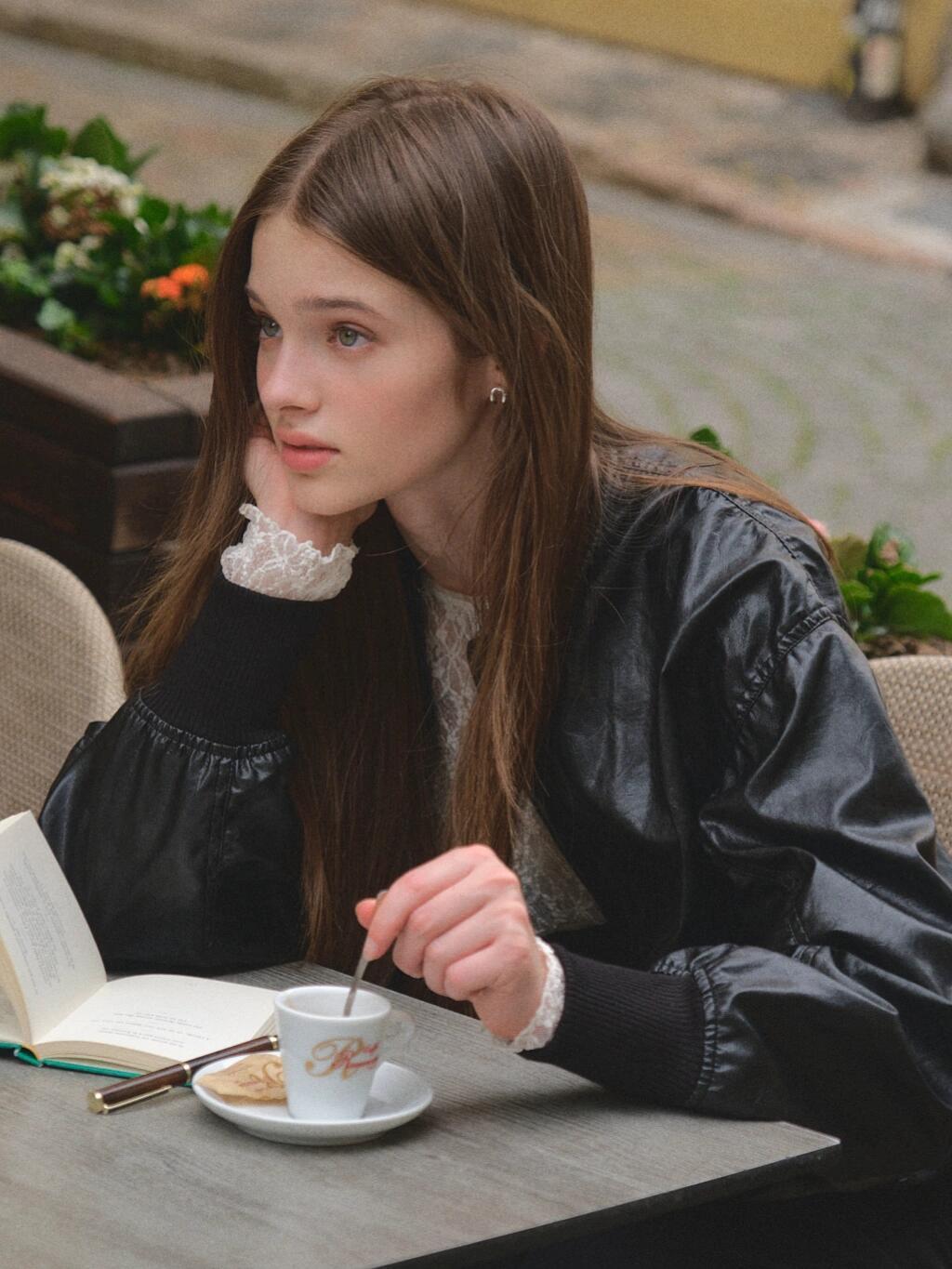比如,酷酷的皮衣,搭配精緻的蕾絲袖子。▼