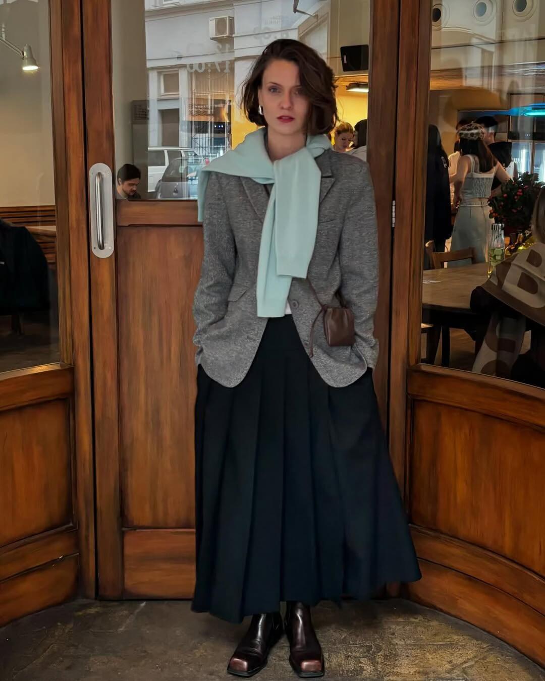 它比黑色特別,比彩色沉穩,無論是搭配你的棕色大衣、麂皮裙還是包包,都能輕鬆呼應,穿出整體感。▼
