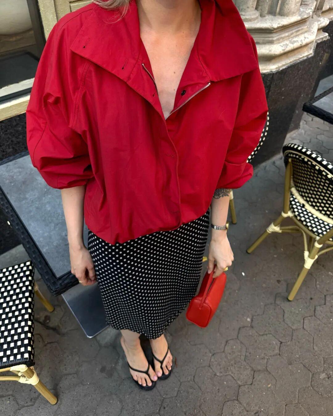 時裝週最火的搭配:抽繩運動夾克+緞面裙,這個混搭穿法出鏡率超高。 ▼
