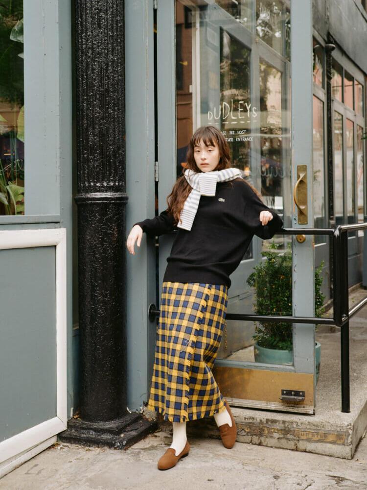 要說今年秋冬格外有辨識度的,還得是裙襬不規則設計的格紋裙。