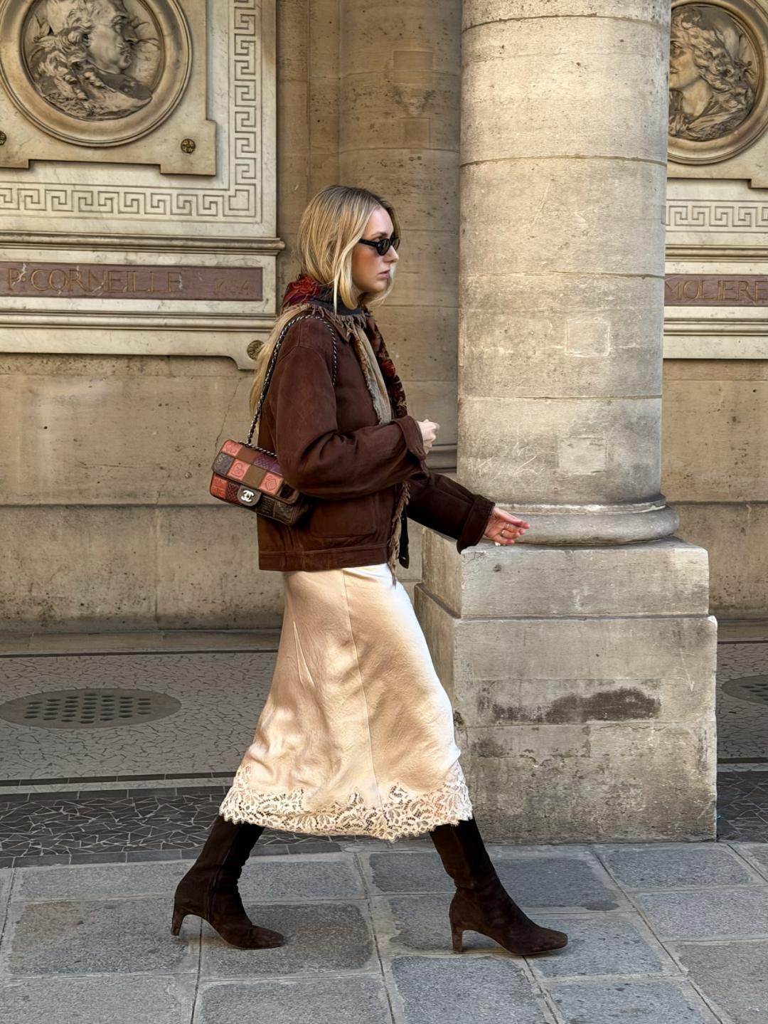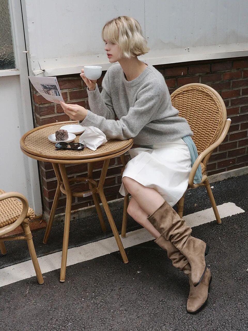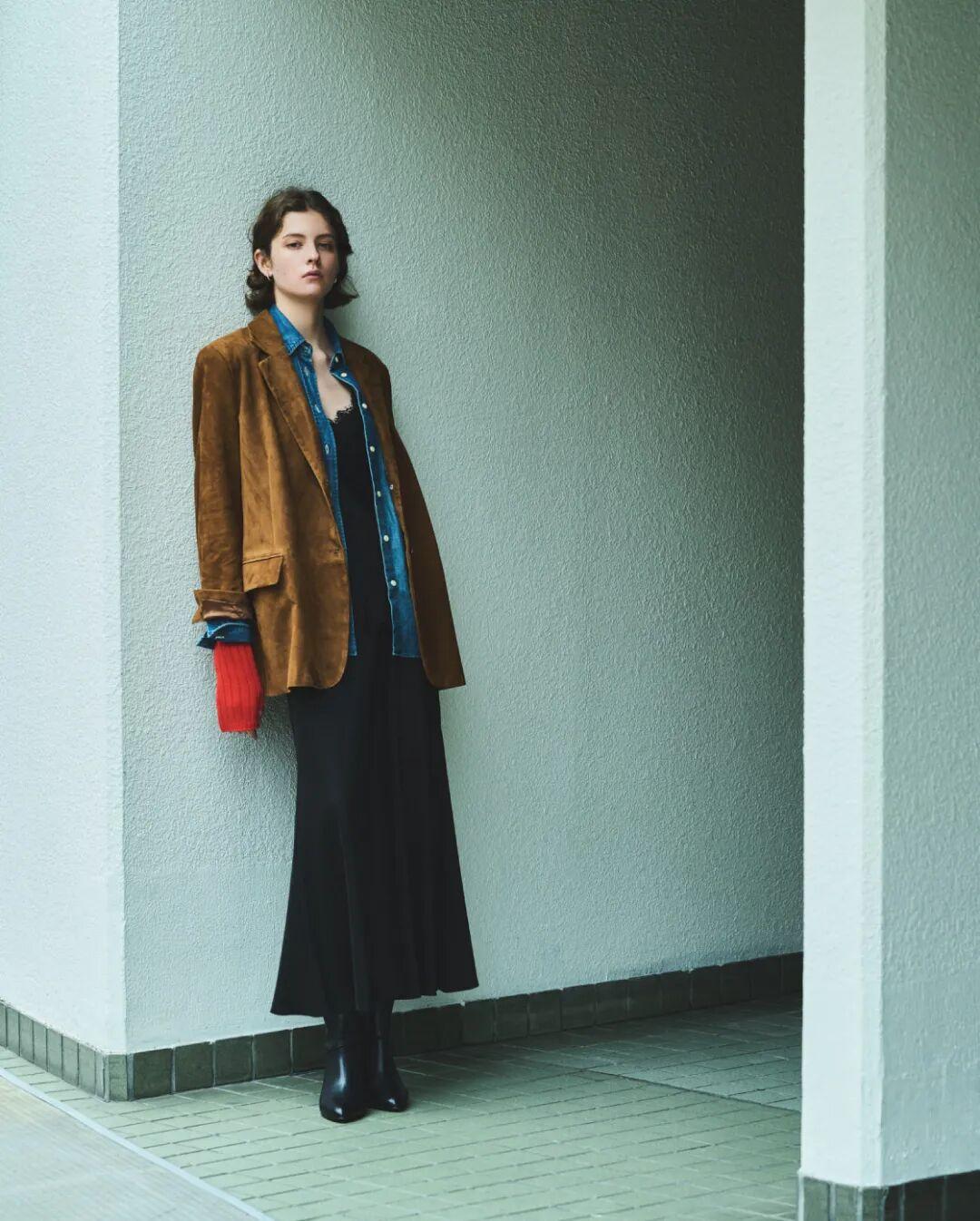 麂皮靴也是秋冬很值得入手的單品,它自帶一種“柔光濾鏡”,能讓整身look都蒙上一層溫柔的復古色調。 ▼