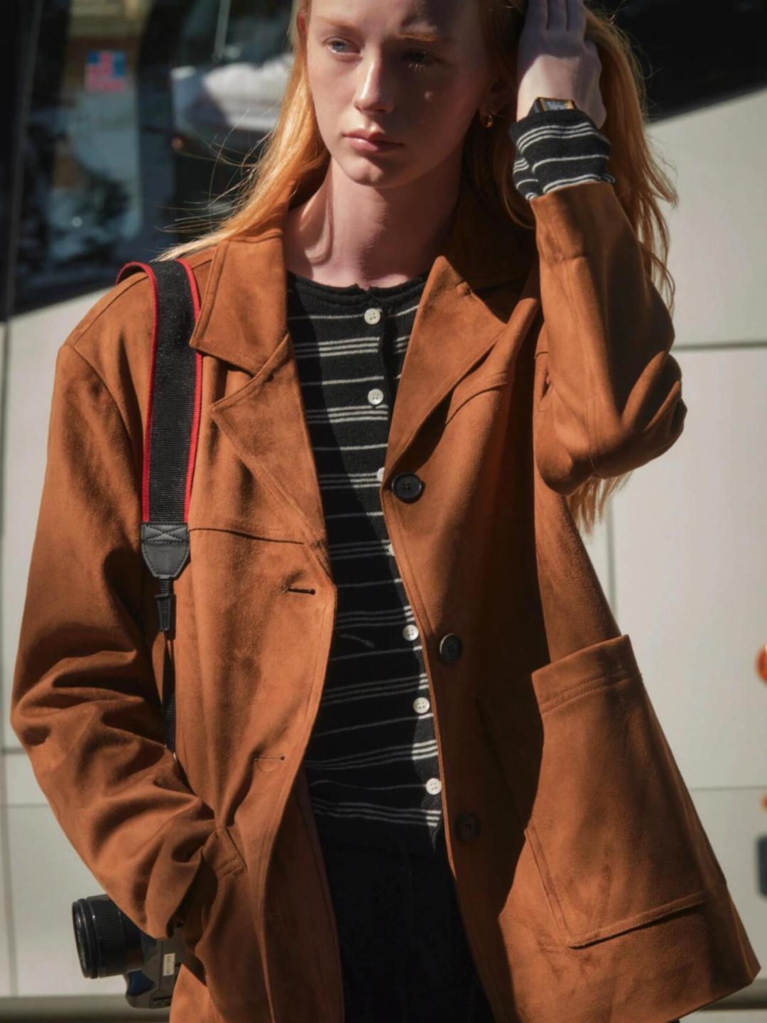 作爲70年代標誌性的時尚單品,麂皮外套今年秋天可以說是強勢迴歸,自帶復古的敘事感。