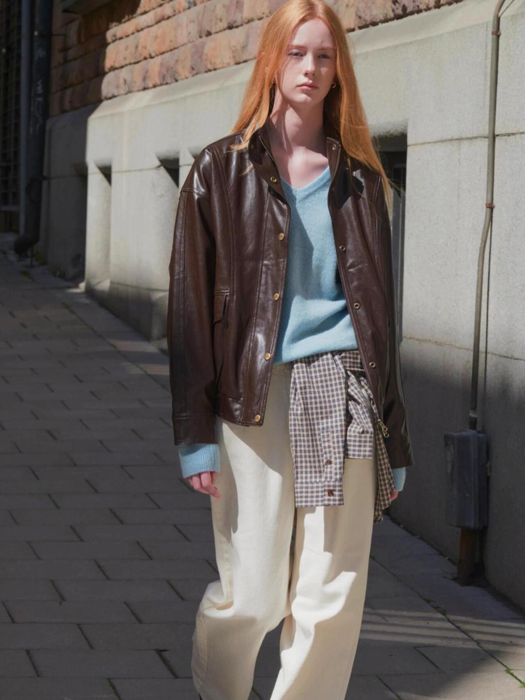 淺彩色針織衫的標籤,也不是隻有“溫柔”。換個思路,搭配利落的單品,它同樣能穿出率性的酷感。▼