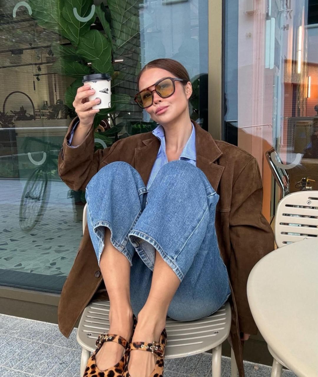 所以更推薦大家選小面積的配飾單品,比如豹紋帆布袋、豹紋鞋子都是不錯的選擇。▼