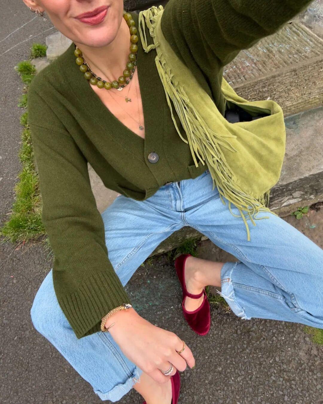 如果想換個顏色,不妨試試綠色麂皮。▼