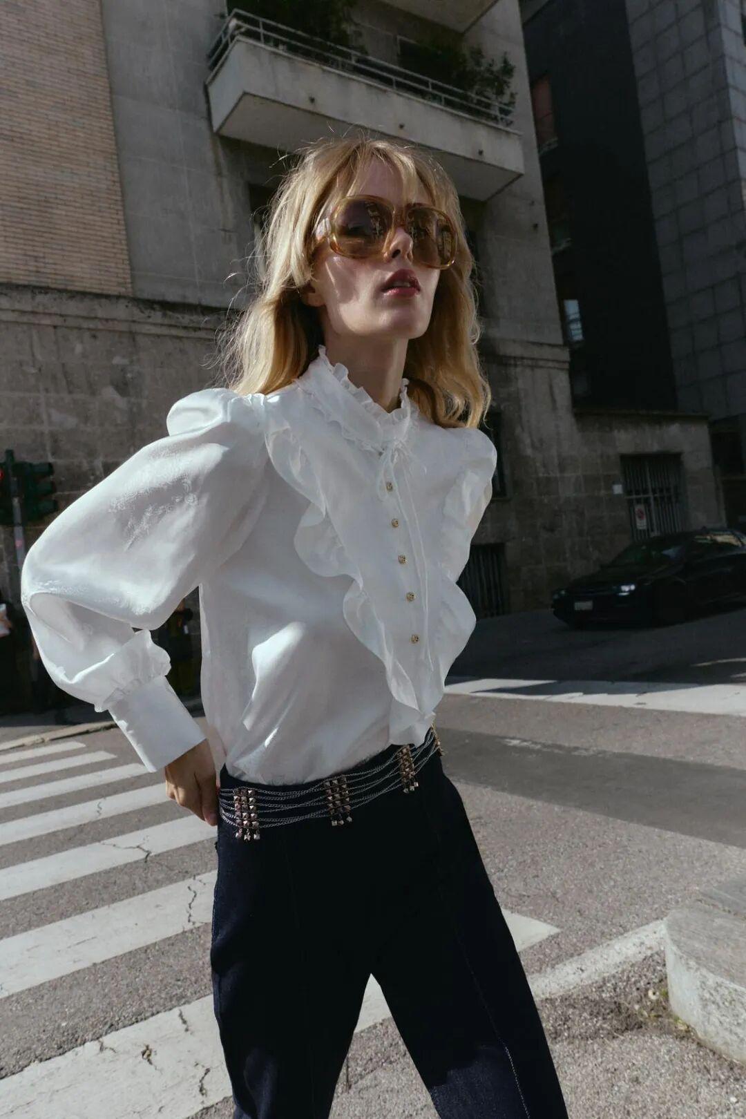 在層層包裹的秋冬,一件領口或袖口有設計感的打底襯衫,可以說是整體造型的“畫龍點睛”之筆。 ▼