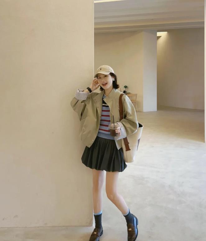 對於小個子女生而言,如何顯高永遠都是最重要的問題,所以選擇外套時,一定要抓住“顯高”的核心,短款風衣,或者是夾克外套,都能大程度上拉長身材比例,搭配高腰裙子或褲子,利用上短下長的搭配方式,輕鬆實現黃金比例。