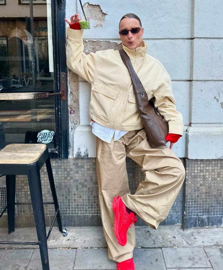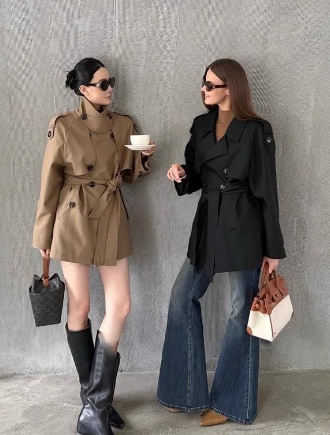 風衣作爲每年秋冬季的衣櫥必備,又怎會不流行呢?特別是這種經典的卡其色,穿起來也太大氣了,內搭牛仔襯衫和同色的喇叭褲,很復古顯利落,腰間金色腰帶進行點綴,不僅修飾身材還提升了腰線,搭配黑色手提包,簡約中又透着幾分精緻,有種優雅摩登範。