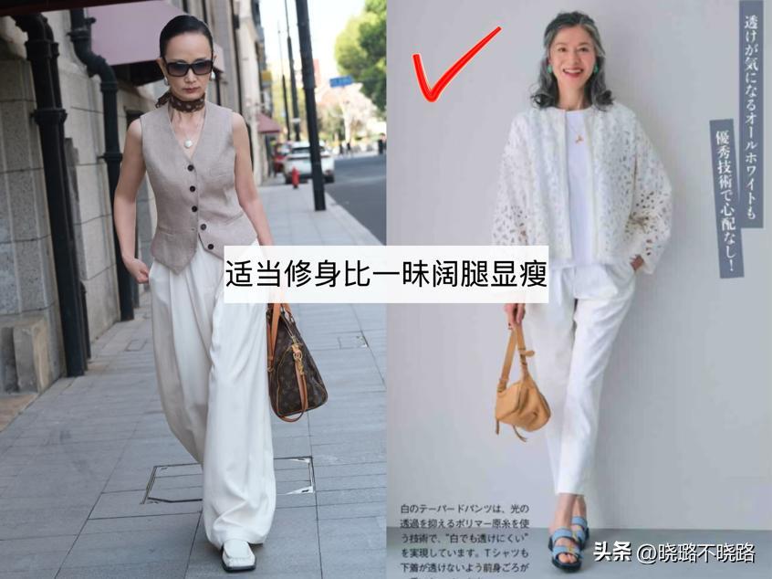 第二部分、“寬褲”贏在版型:原由美避開2個雷區,穿對比緊身褲更顯年輕