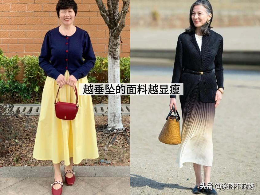選款技巧3. 面料認準垂墜感材質,雪紡、天絲款爲主,不像棉質易皺顯臃腫,走路帶風更顯輕盈