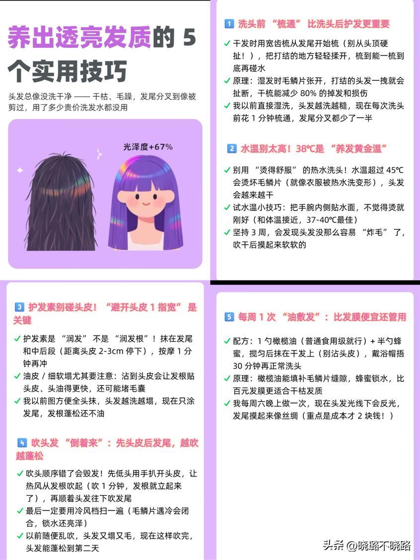 原由美深知,顯老的不是直髮,而是乾枯、毛躁、無光澤的髮質。因此,她將護髮的核心放在“光澤度”的營造上。一頭柔順、亮澤、充滿健康活力的直髮,其本身就散發着一種年輕、有生命力的信號。因此我們在日常中也要做好頭髮管理,知道正確的洗髮和護髮流程步驟。