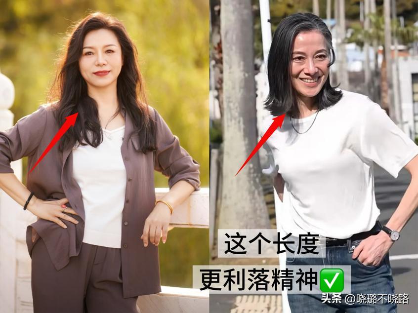 她找到了最適合成熟女性的髮型黃金長度:鎖骨發,或長度在肩膀下方5釐米左右的LOB頭。這個長度完美規避了兩個極端:一方面,它不像男性化的超短髮那樣容易凸顯面部骨骼感,顯得過於凌厲;另一方面,它也避免了過肩長髮在中年容易帶來的沉重、拖沓與沉悶感。這個長度剛好能在視覺上拉長頸部線條,修飾臉型輪廓,顯得臉龐小巧精緻。同時,它易於打理,披散時優雅,紮起時利落,自帶一種恰到好處的精神氣。