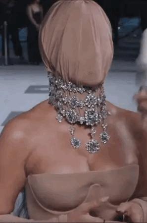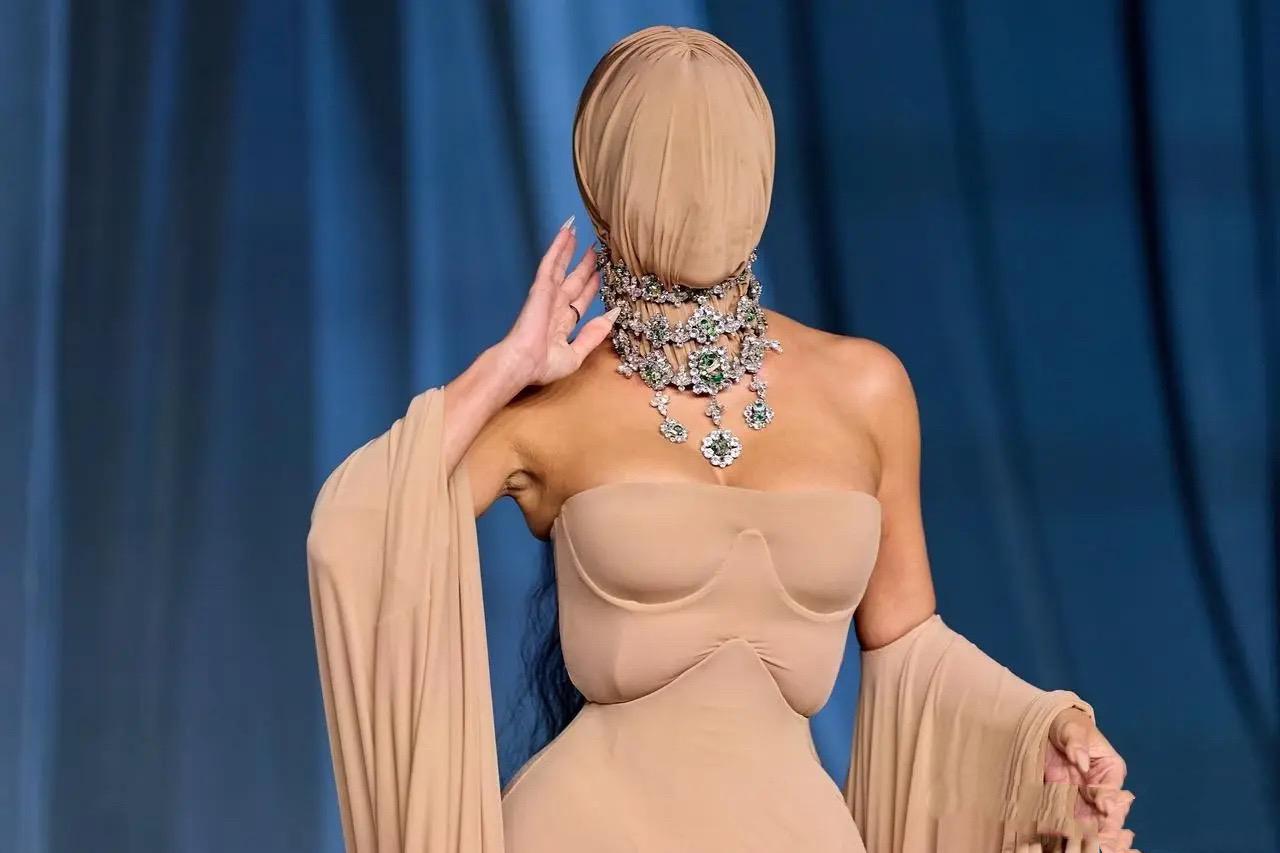 金卡戴珊蒙面走紅毯,束腰禮服勒出“雙層胸”,太像坎爺的手筆了