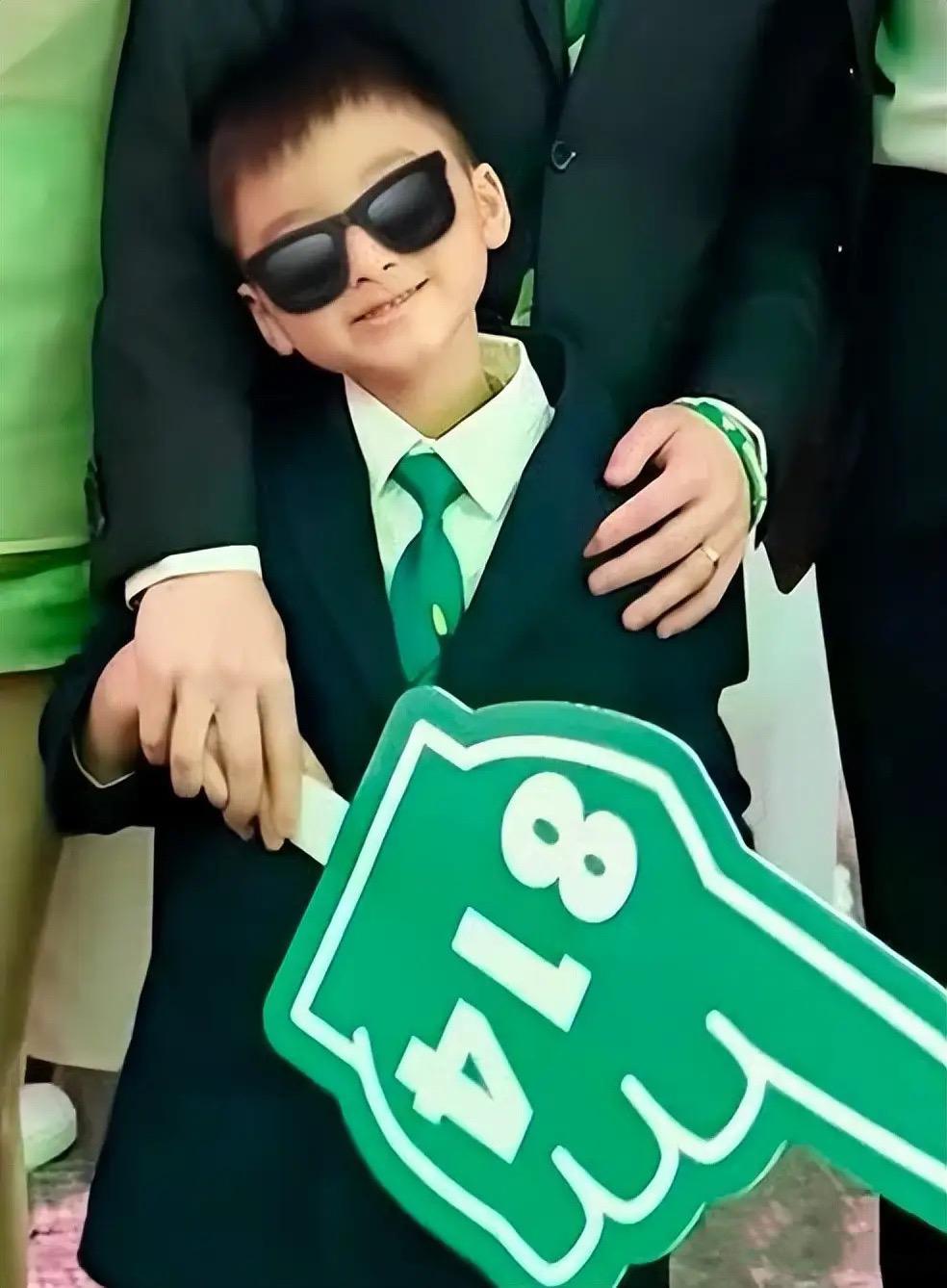 5歲的何廣燊,也是賭王長孫。小小年紀,就很有氣場。何廣燊也穿了黑色西服,穿正裝的他很帥也很有範。