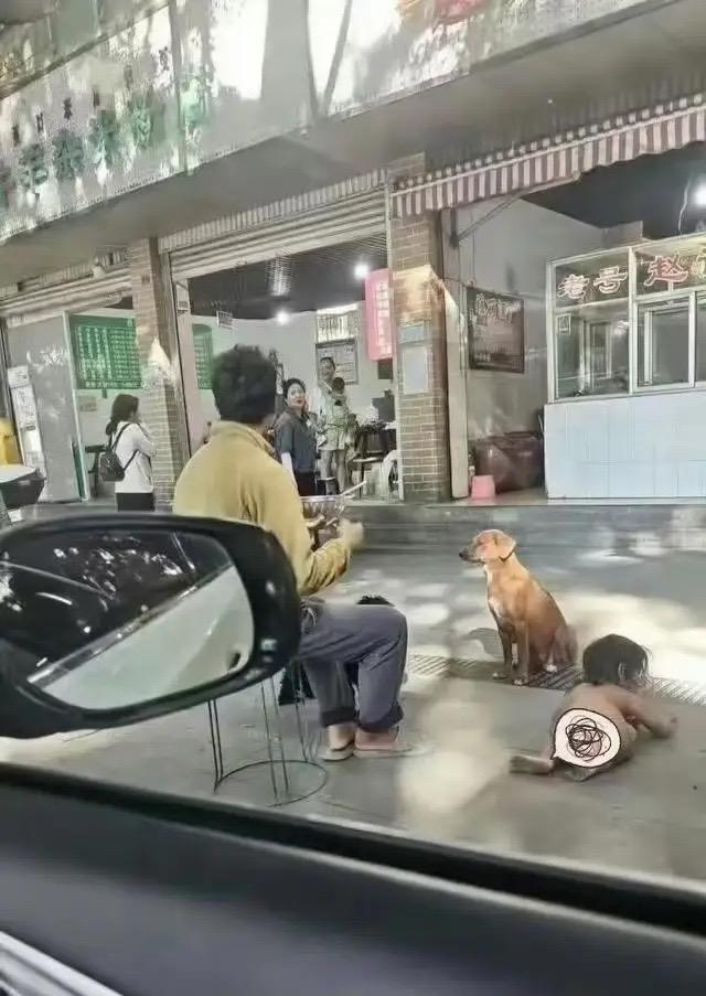 孩子的父親,聽說是一個狗場的老闆。在他們身邊,一直跟着一隻狗狗。小孩和狗狗一樣,就經常這樣不穿衣服趴在地上,小孩子看着很瘦弱,雖然3歲了、但感覺還沒一歲的孩子大。