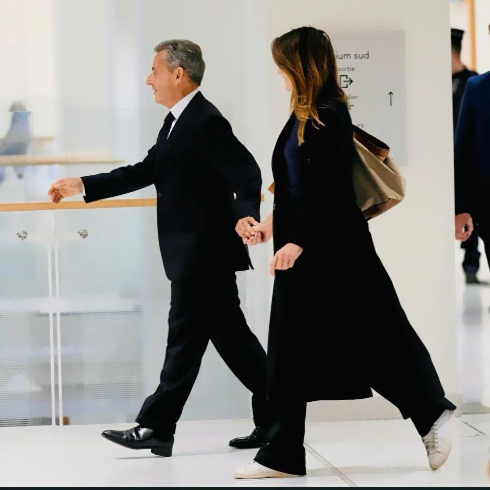2025 年 9 月 25 日,薩科齊出庭當天,布呂尼身着簡約黑裙,面帶從容微笑,全程緊牽丈夫的手,彷彿要用自己的鎮定爲他驅散不安。