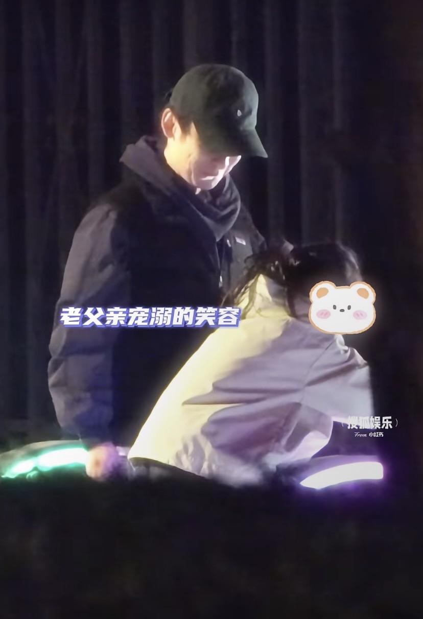 董子健帶女兒喫火鍋逛公園,他叼着煙給女兒拍照,父子倆玩很嗨