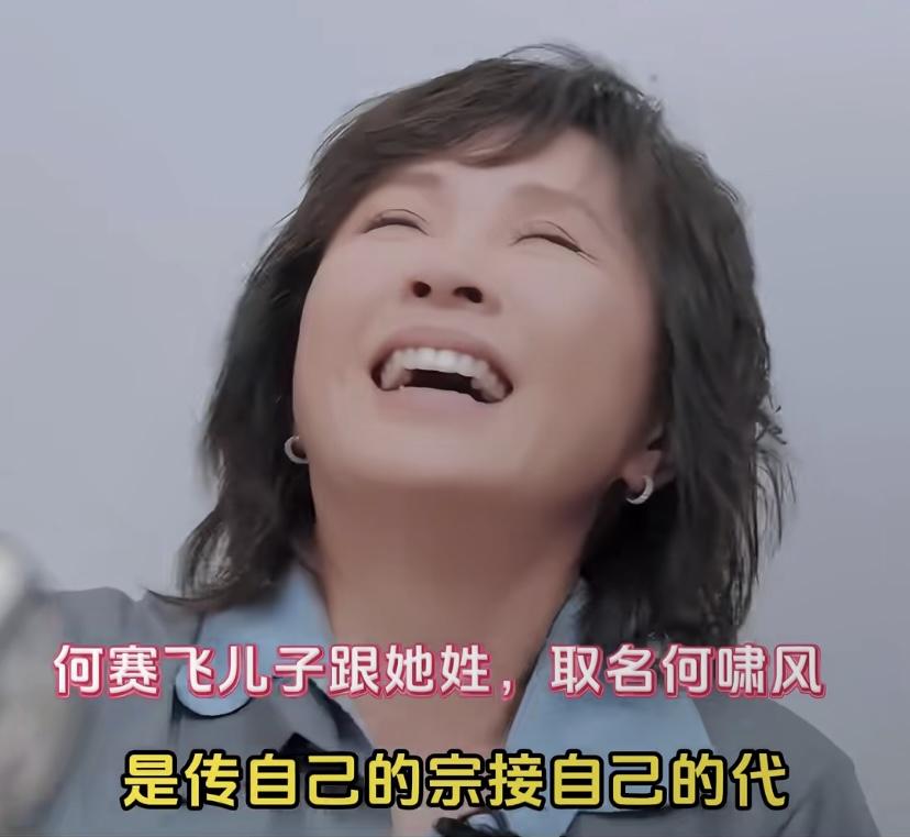 隨後何賽飛表示她的跟她姓,名叫何嘯風,是傳自己的宗、接自己的帶。雖然在結婚的前10年何賽飛也堅持丁克,但她意外生下兒子、就給生孩子冠上了“生命延續”的美稱。