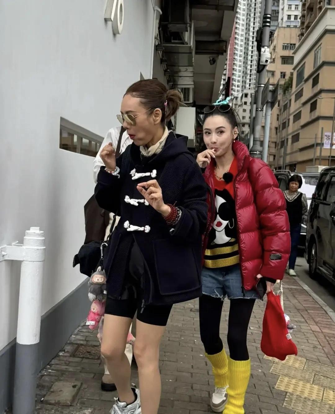 劉嘉玲對幾位姐妹也很照顧,買了喫的還親自投餵寧靜。這樣的嘉玲姐姐也太暖心了啊,她挽起衣袖、走路帶風的樣子太颯了。