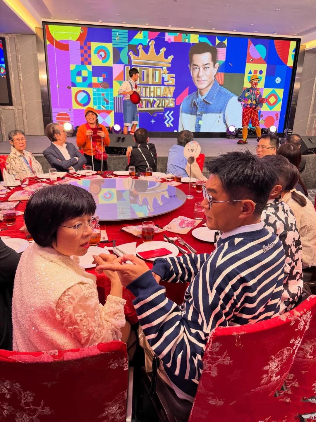 生日宴一共設了50桌,可以說規模很大。爲了和粉絲們一起慶祝,古天樂也是特別用心。他和媽媽坐在一起,大概是席間會更方便照顧媽媽。