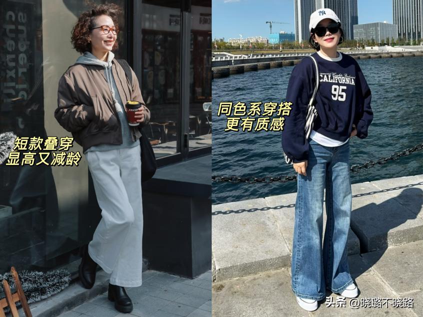 "衣不緊"的智慧在於懂得通過版型搭配來優化身材比例。短款寬鬆衛衣與高腰闊腿褲的組合,既能保持舒適度,又能在視覺上拉長身形。例如,選擇衣長及腰的短款設計,搭配高腰線的下裝,讓腰線位置上移,自然顯得身材修長。這種搭配方式特別適合中年女性,既能保持穿着的舒適自由,又能展現出利落挺拔的身姿。在色彩搭配上,建議採用同色系或相近色系的組合,讓整體造型更顯修長。