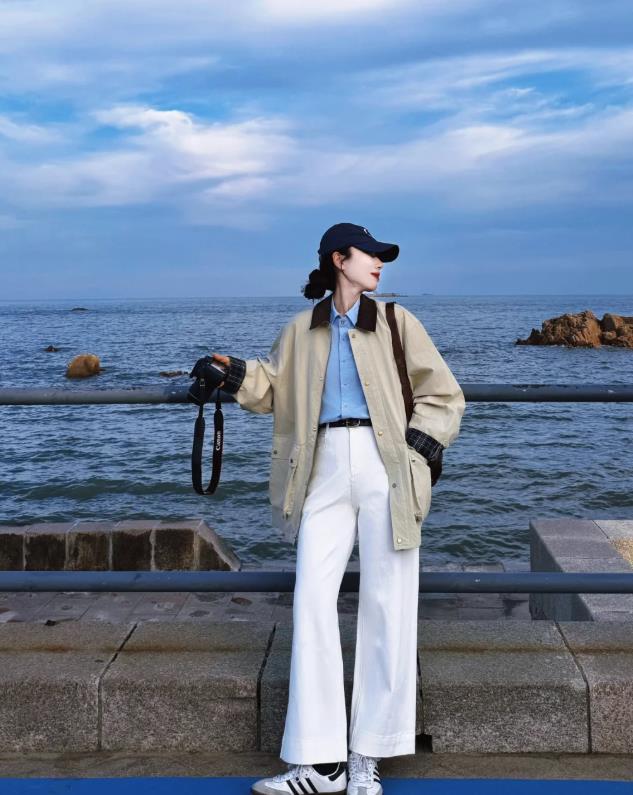 秋日的溫差一般都是比較大的,露腿的穿搭真的不太合適,而闊腿褲寬鬆的版型,不能能很好容納一些打底褲,還保暖顯瘦,配合一雙德訓鞋來配,比起硬朗的皮鞋要舒適太多了,哪怕是長時間走路也不怕。