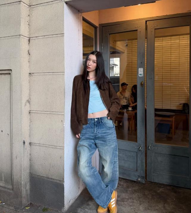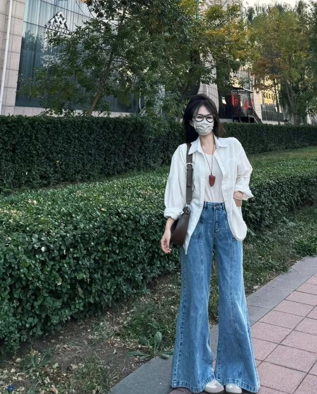 在選擇闊腿褲這種款式的褲子時,首選要選擇垂墜感和質感比較好的面料,那些容易軟塌以及易皺的面料,穿起來會顯得比較廉價,像羊毛、牛仔等垂墜感比較好的面料,不僅能優化身材比例,還很顯瘦。