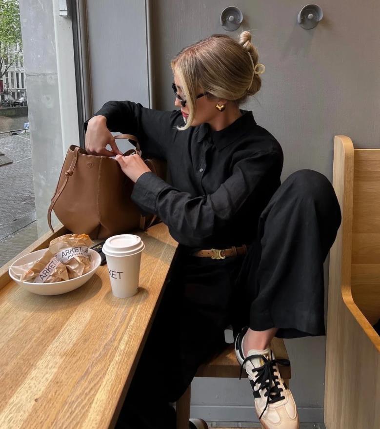 今年秋天最流行的穿法:闊腿褲+德訓鞋,時髦又減齡!