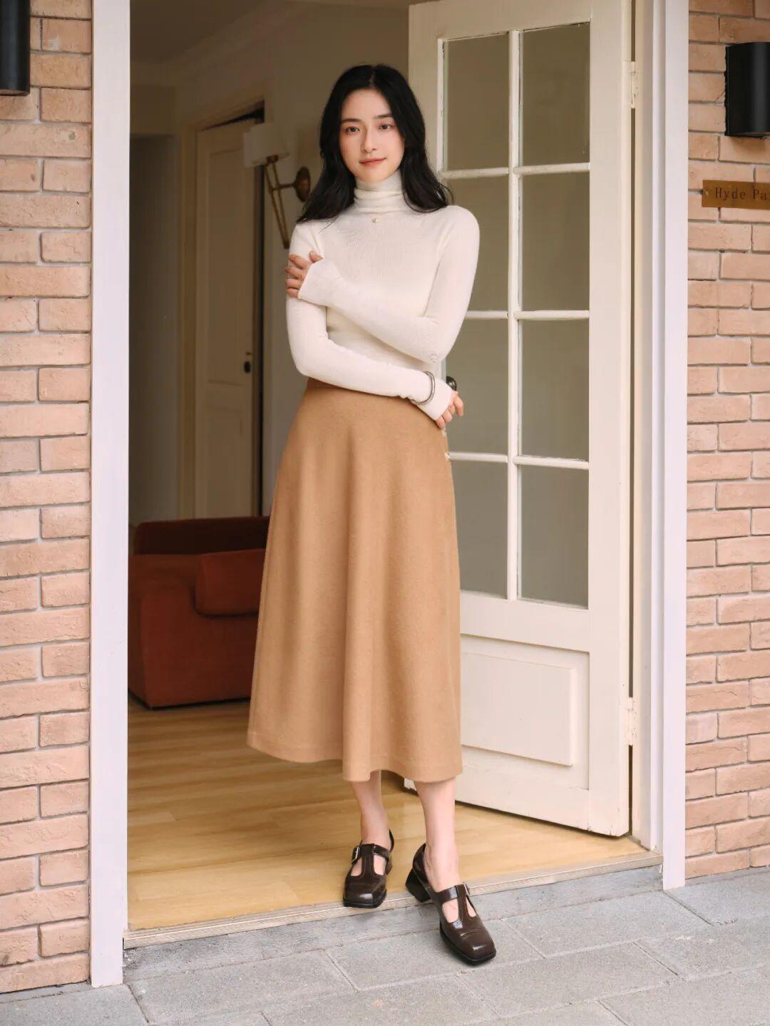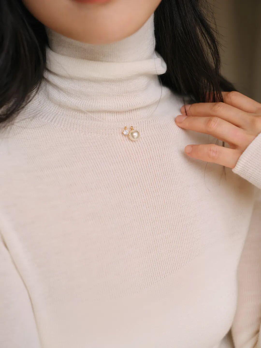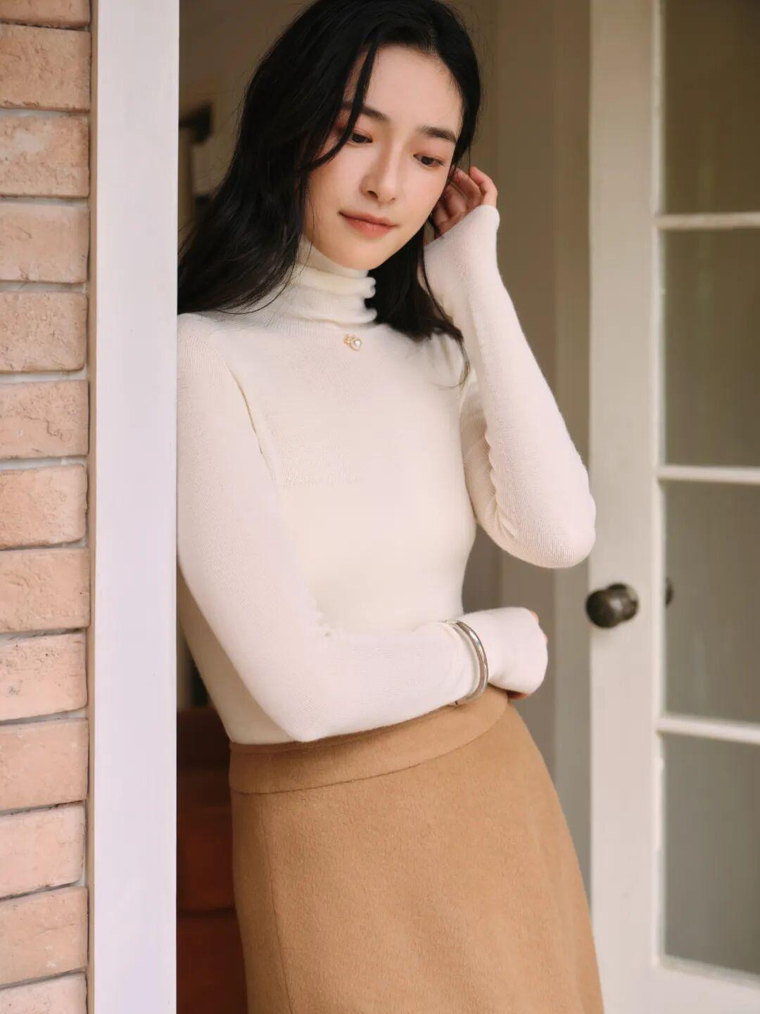 半高領呢,剛好能包裹住脖子的一小部分,完全不會埋沒脖子,適合短脖星人,能小心機地勾勒天鵝頸。 ▼