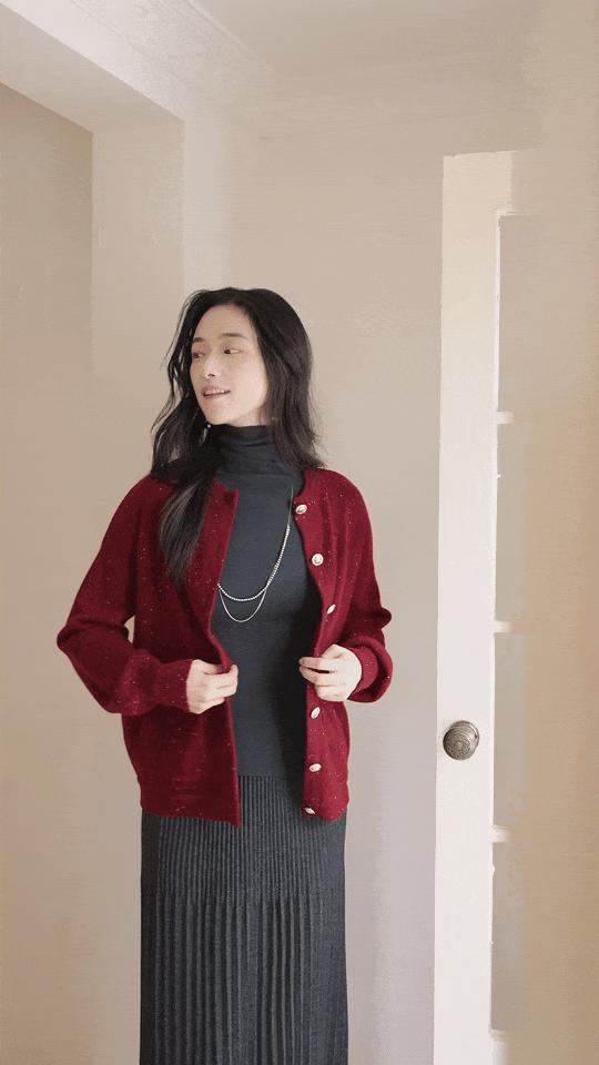 再搭配12針平針織法,整件開衫的觸感更加細膩、也擁有了難得的垂墜感,所以哪怕貼身穿都不會扎、視覺上也不顯臃腫。 ▼