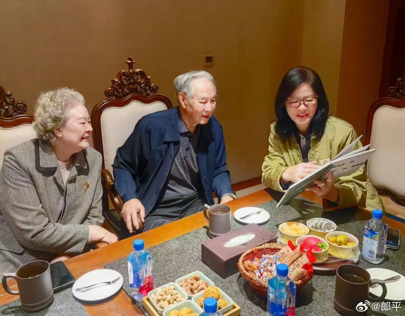 郎平還給鄧若曾夫婦送了鮮花,他們三個人一起合影了。89歲的鄧若曾穿一身黑色衣服,連襯衫都是黑色系,打扮的很低調、頗有老幹部風。
