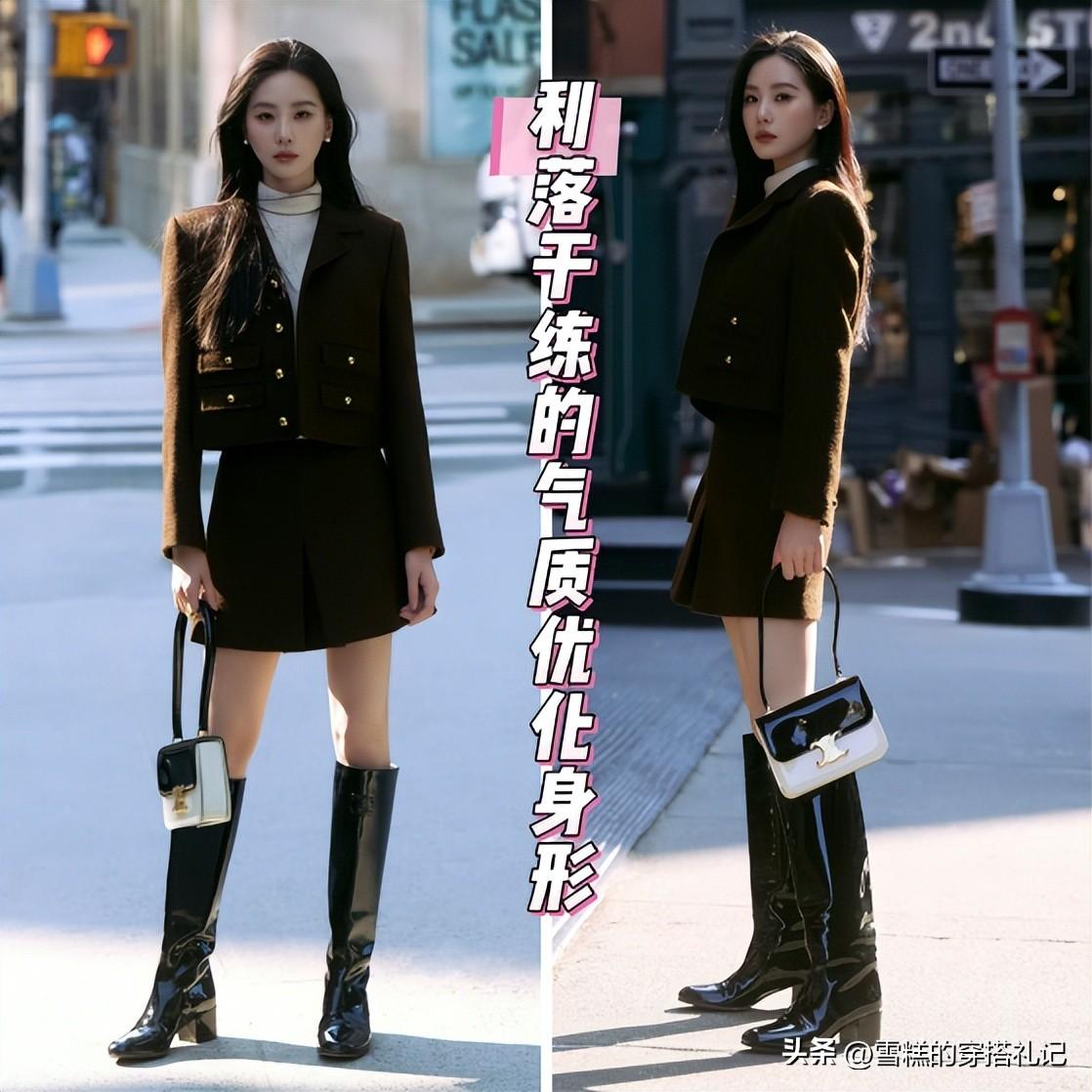 而且短裙和長靴的搭配方式,其實在秋季當中的時候也是非常極具經典型的存在,不少的女藝人都會選擇這樣的穿搭組合,很多都會選擇像利落感比較明顯的短裙與基礎款式的長筒靴來進行組合搭配,整體呈現出來的身形狀態是非常纖細又好看的,而且氣質狀態也更加的偏向於利落高級一些,很適合當下應用於職場搭配的。