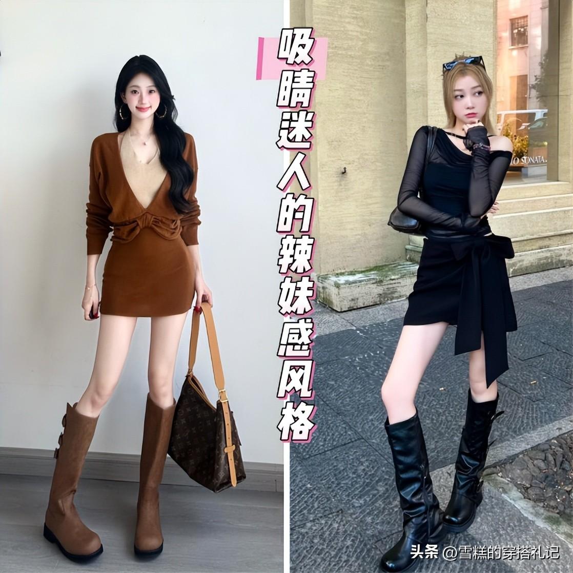 ⑵ 貼身短裙+修身長筒靴,辣妹風格