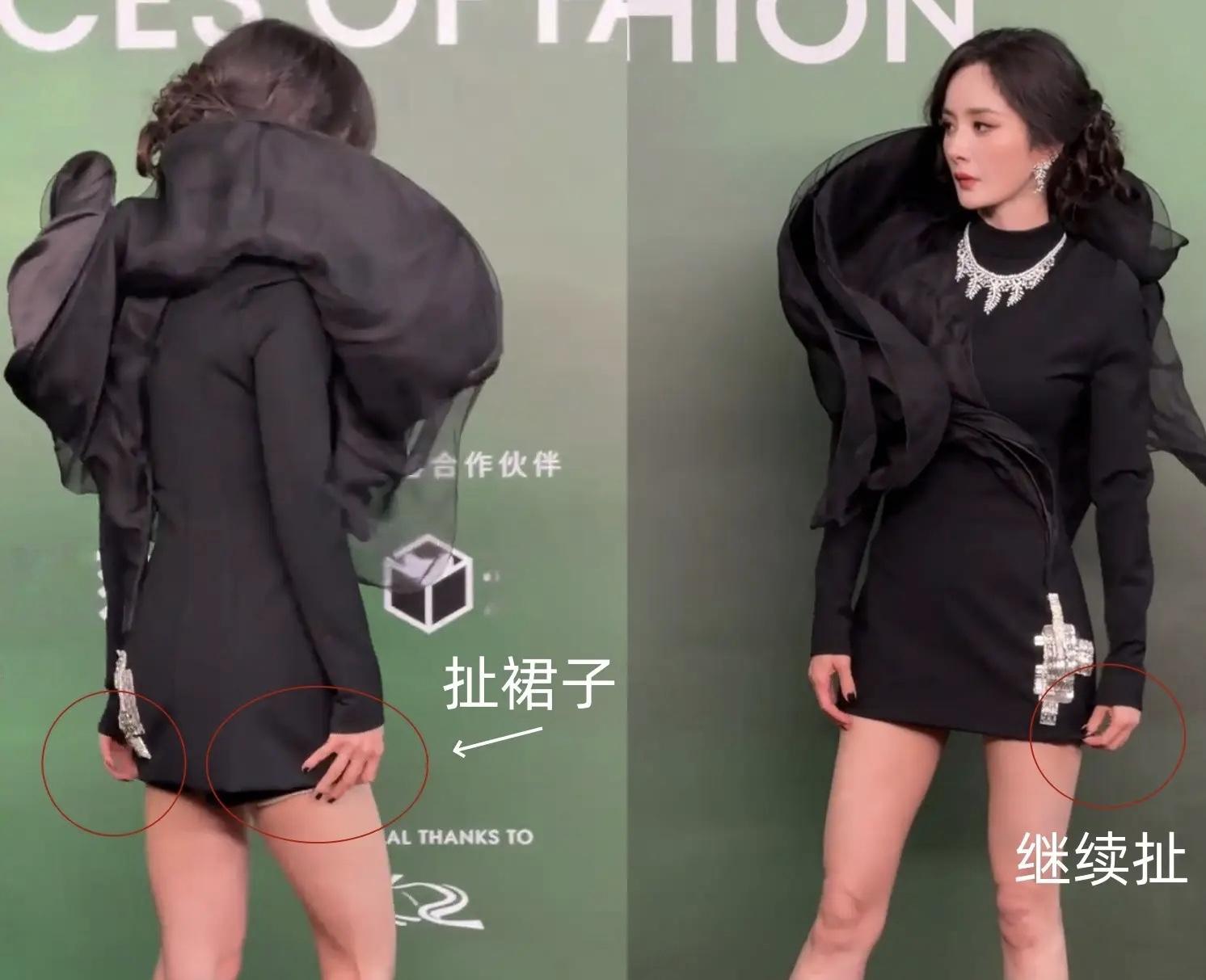 話說回來,楊冪這條裙子可真是足夠短。在走紅毯的時候,總是情不自禁的去“扯裙襬”,生怕走光了一樣。