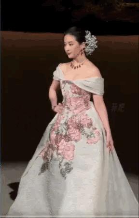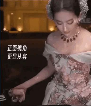 當天劉亦菲穿了很華麗的裙子,一眼望去奢華高貴,滿頭的簪花造型也很閃耀。可手腕上的鐲子、真是太不爭氣了。
