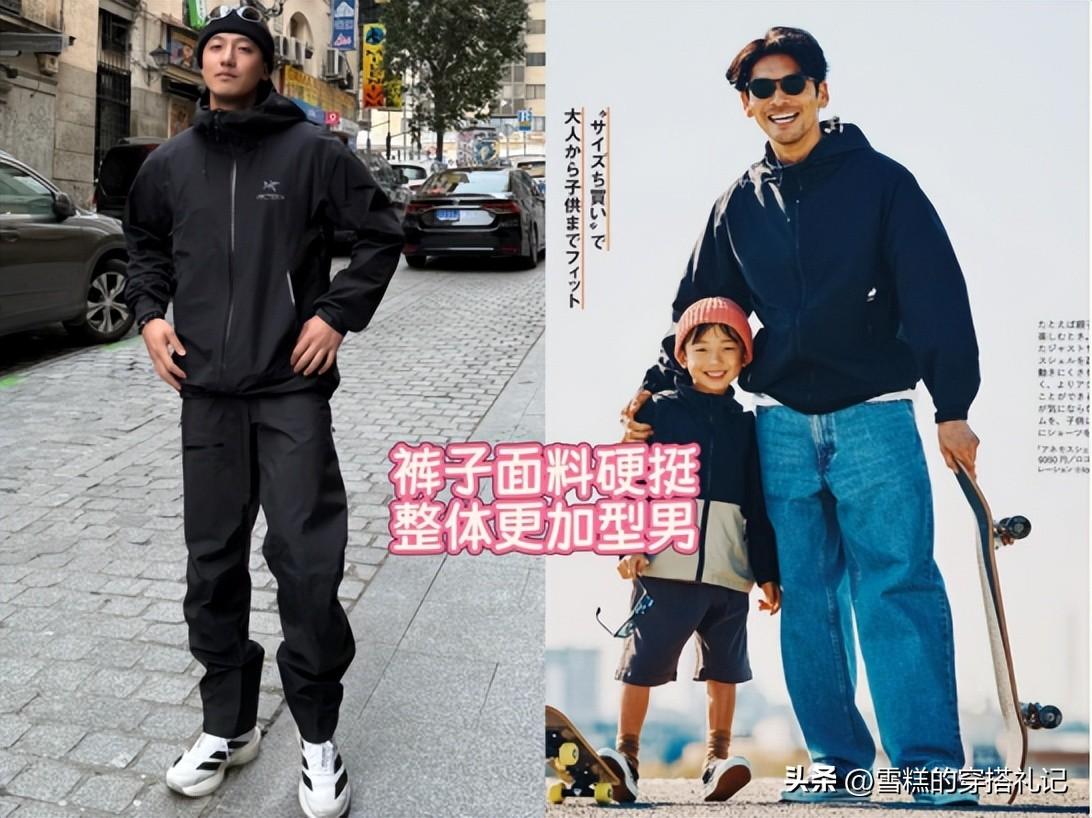 現代男性需要應對多元化的生活場景,而衝鋒衣與直筒褲的組合恰恰具備這種強大的適應性。工作日通勤時,選擇純色衝鋒衣內搭Polo衫,搭配深色直筒褲,既保持職場所需的利落感,又不會過於隨意;週末戶外活動時,換上功能性更強的防水衝鋒衣,搭配耐磨的工裝直筒褲,實用性與舒適性兼備;帶娃出遊時,輕便的連帽衝鋒衣不僅能防風,還能臨時遮陽,搭配彈性直筒褲確保活動自如。這一套穿搭就能應對全天候場景,遠比需要頻繁更換的"西裝+皮鞋"組合更加實用省心。