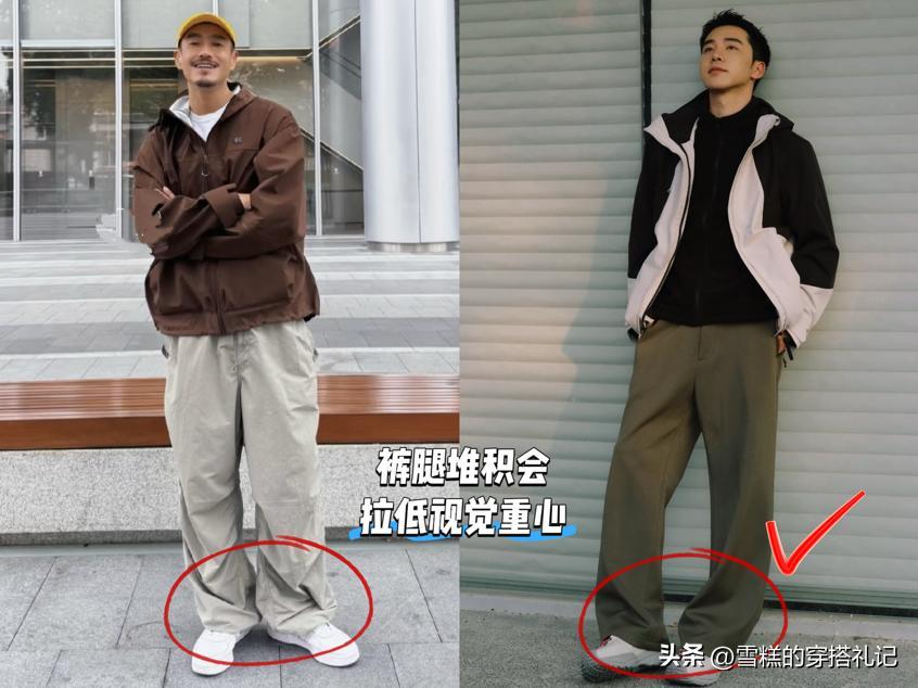 與之搭配的直筒褲更是修飾腿型的利器,在胯部預留一指的餘量,褲型保持筆直向下,無論是假胯寬、小腿粗壯還是腿型不直的問題都能輕鬆化解。這樣的組合即使體重達到150斤,也能通過"肩寬腰窄"的視覺效果,塑造出利落挺拔的身形,遠比軟塌的運動褲更顯精神。