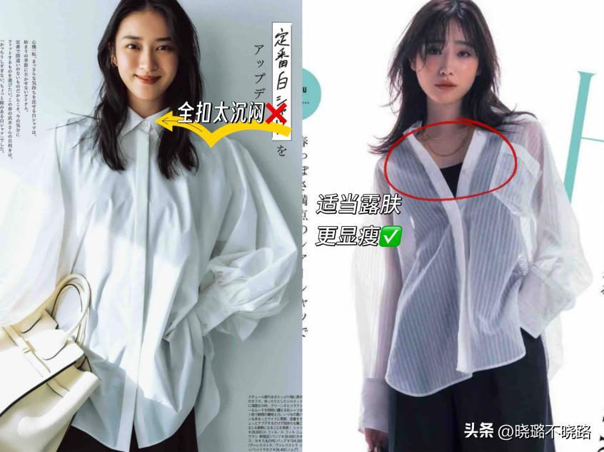 事實上,襯衫的穿着方式遠不止這一種,尤其是在日本時尚雜誌中,造型師們早已總結出一系列既顯瘦又時髦的襯衫穿法,讓普通女性也能輕鬆穿出好比例。