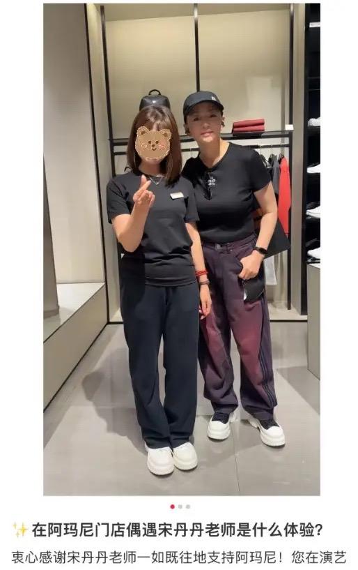 大明星的影響力還是不容小覷,宋丹丹到店裏購物,被導購們爭着要合影。宋丹丹也很配合,耐心地和大家合影了。