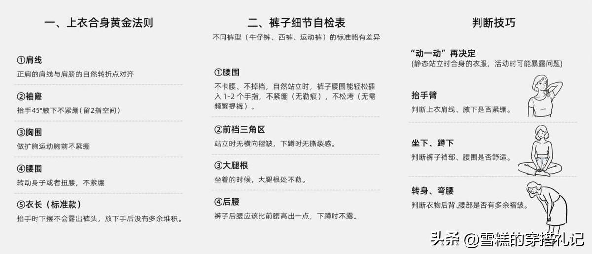 2. 牢記“身材維度”:線上對標數據,線下試穿較真,別被“版型騙”