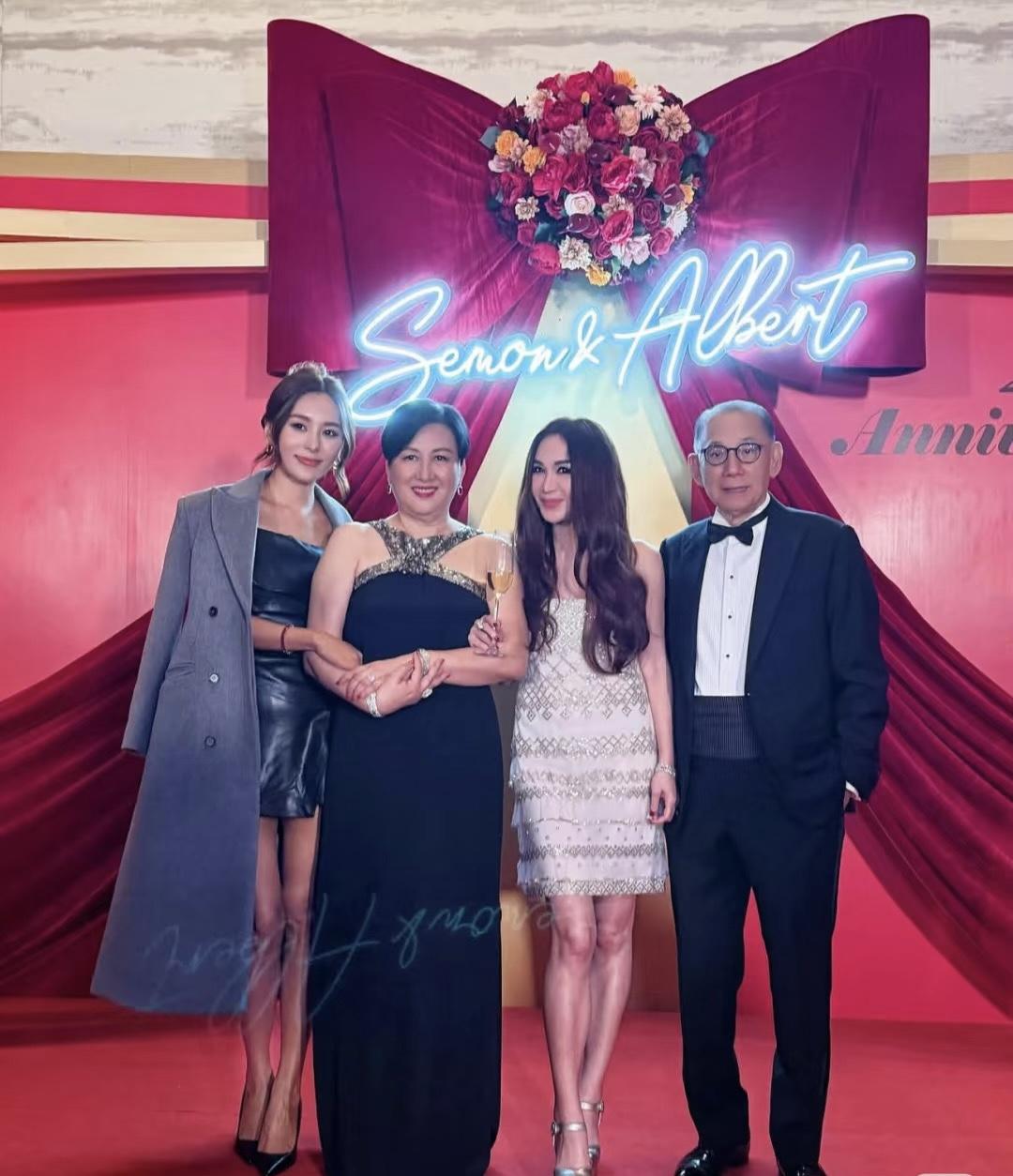 這一次阿嬌回香港,是爲了慶祝老闆楊受成40週年的結婚紀念日。英皇老闆慶祝紅寶石婚,旗下的藝人大部分都來了,除此之外劉鑾雄、向太夫婦也罕見露面。