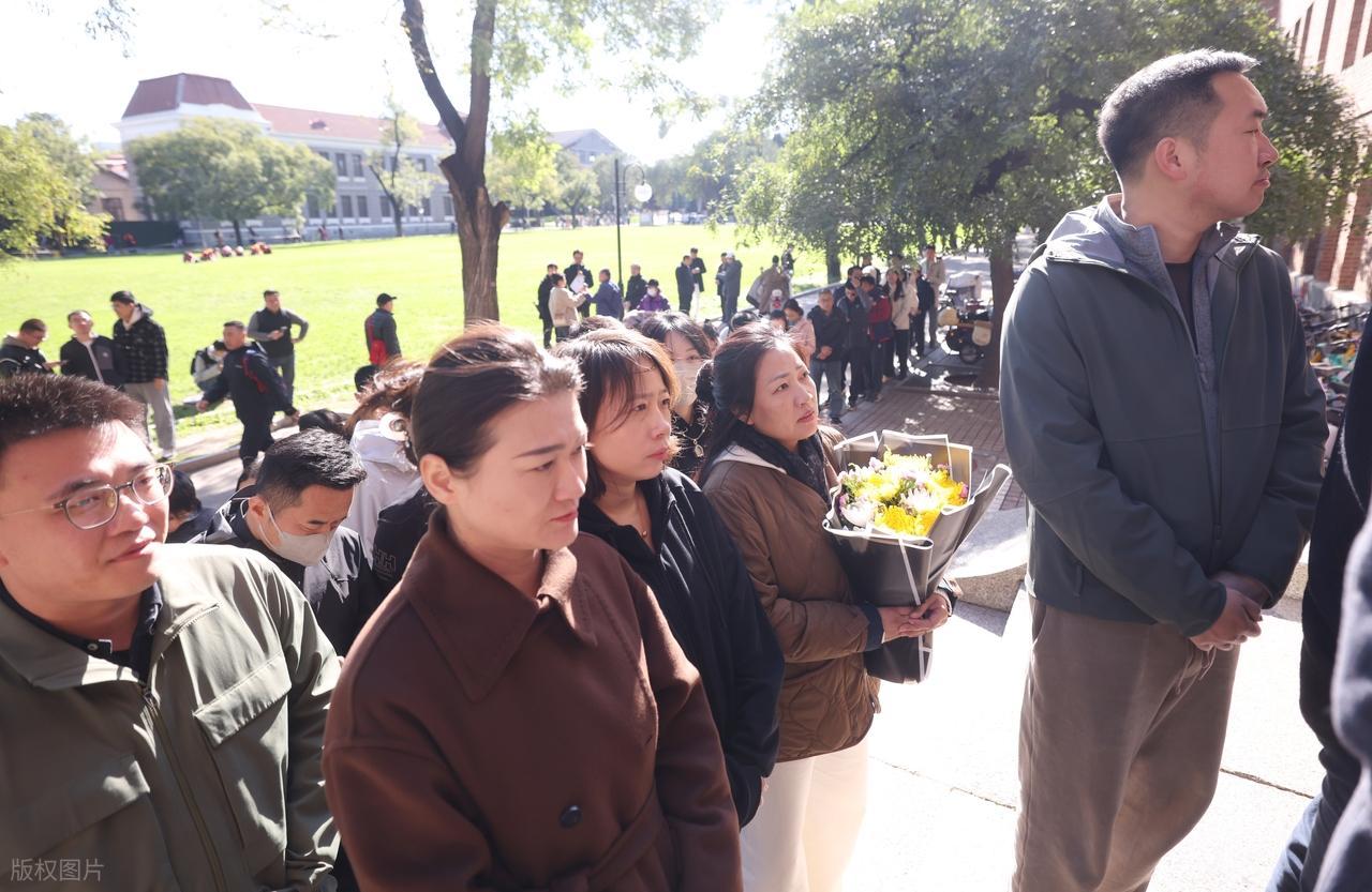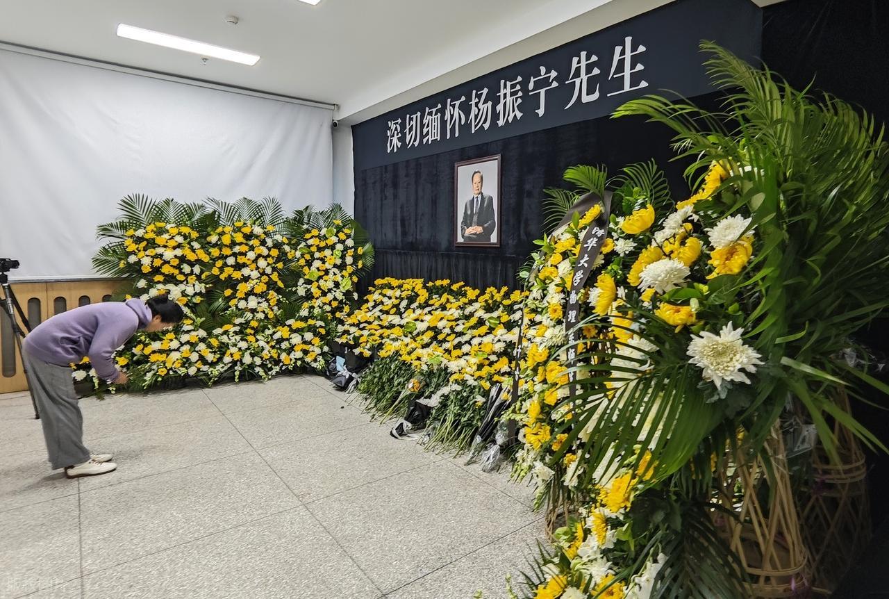 葬禮上抱着遺像的應該是楊振寧的孫子輩,他的遺體覆蓋國旗、葬禮辦的莊嚴肅穆。親友們都身穿黑衣,深情悲痛。先生的離去,每一個人都很傷懷。