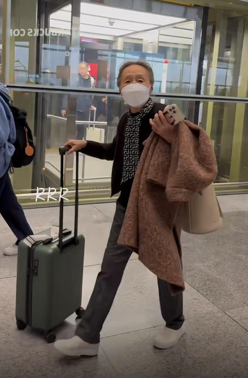 不管是行李箱,還是包包、衣服,全是一個人拿着,並沒有麻煩助理幫助。87歲的奶奶,在機場健步如飛,這狀態真讓人羨慕。