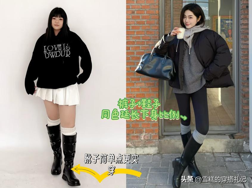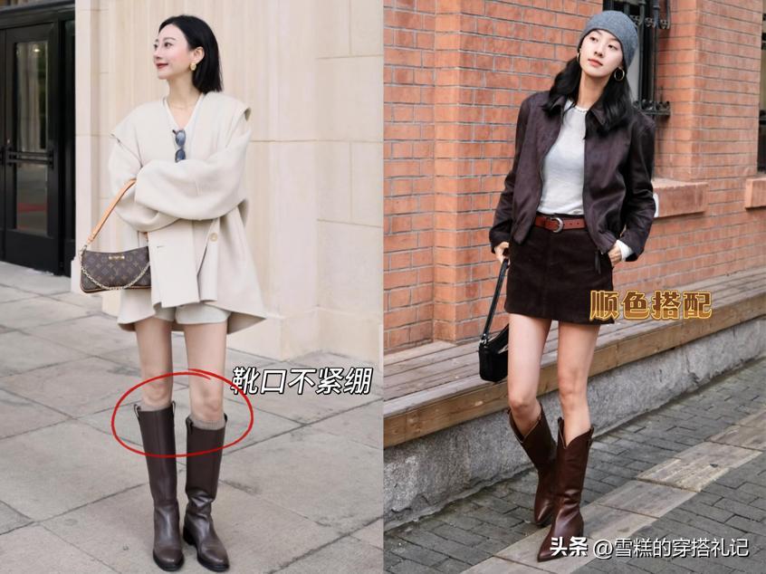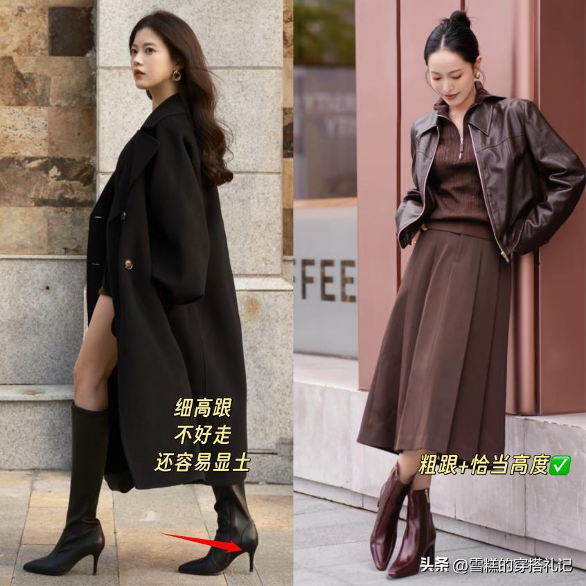 3. 細節加分:靴筒有“側拉鍊”顯腿直,選“同色系靴子+褲子”拉長比例,小個子別穿“帶複雜裝飾”的靴子