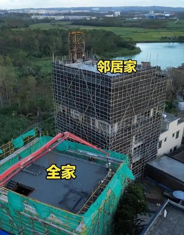 建房子就建房子吧,效果高一些、速度快一些,也沒什麼都可以理解。可全紅嬋老家的房子才3層半的高度,對面竟然已經高出一大截了,目測怎麼也得有五六層高了。