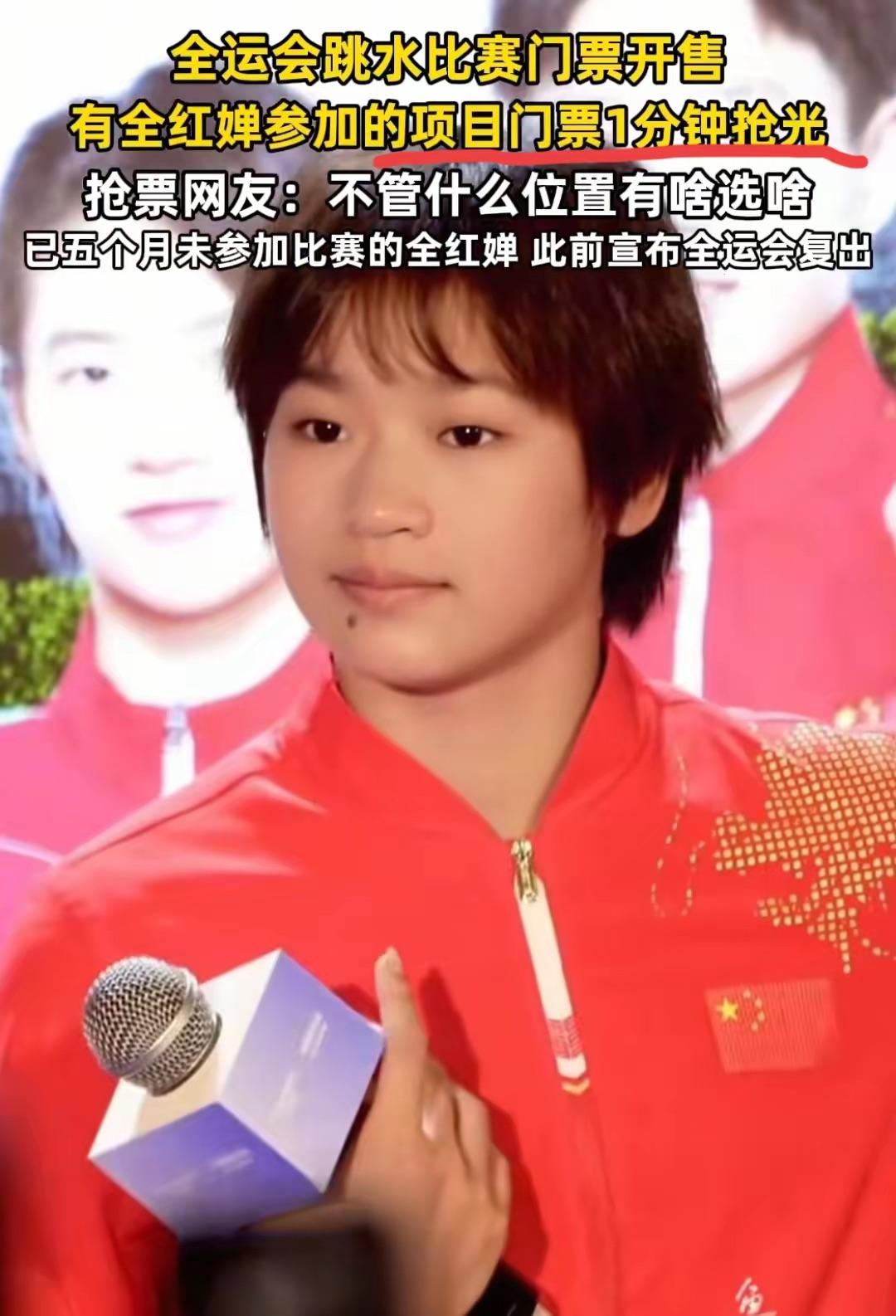 全紅嬋的魅力,果然不容小覷。不管是全運會、還是跳水賽,很多人都是衝着全紅嬋去看的,她都成爲國民小明星了。