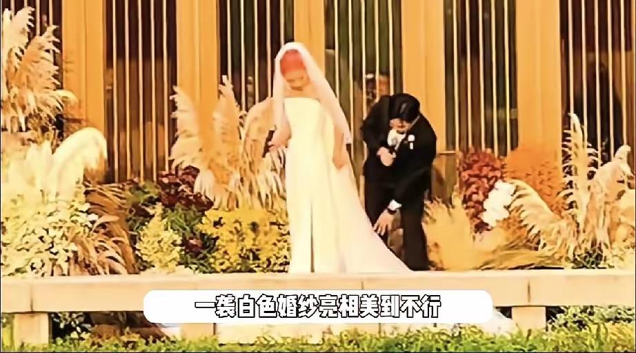 穿着白色婚紗的劉一絲,也是美到不行。她又高又瘦打扮得時髦洋氣。白色抹胸禮服,紅色的頭髮,在她身上有一種年輕的張力,看着非常個性。