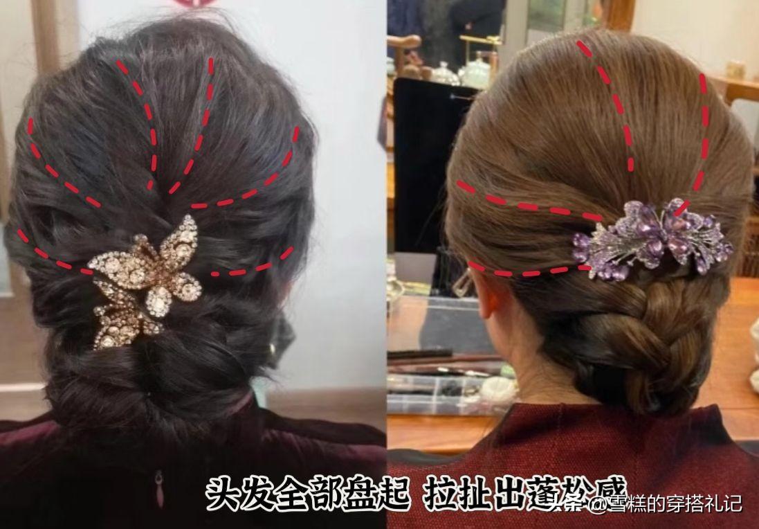 50多歲的中年女人,真的很適合盤發,即便你的髮量很稀疏,只要將頭髮編成辮子之後,再盤起來,就能達到顯髮量的效果,全部盤好之後,還可以拉扯出蓬鬆感。