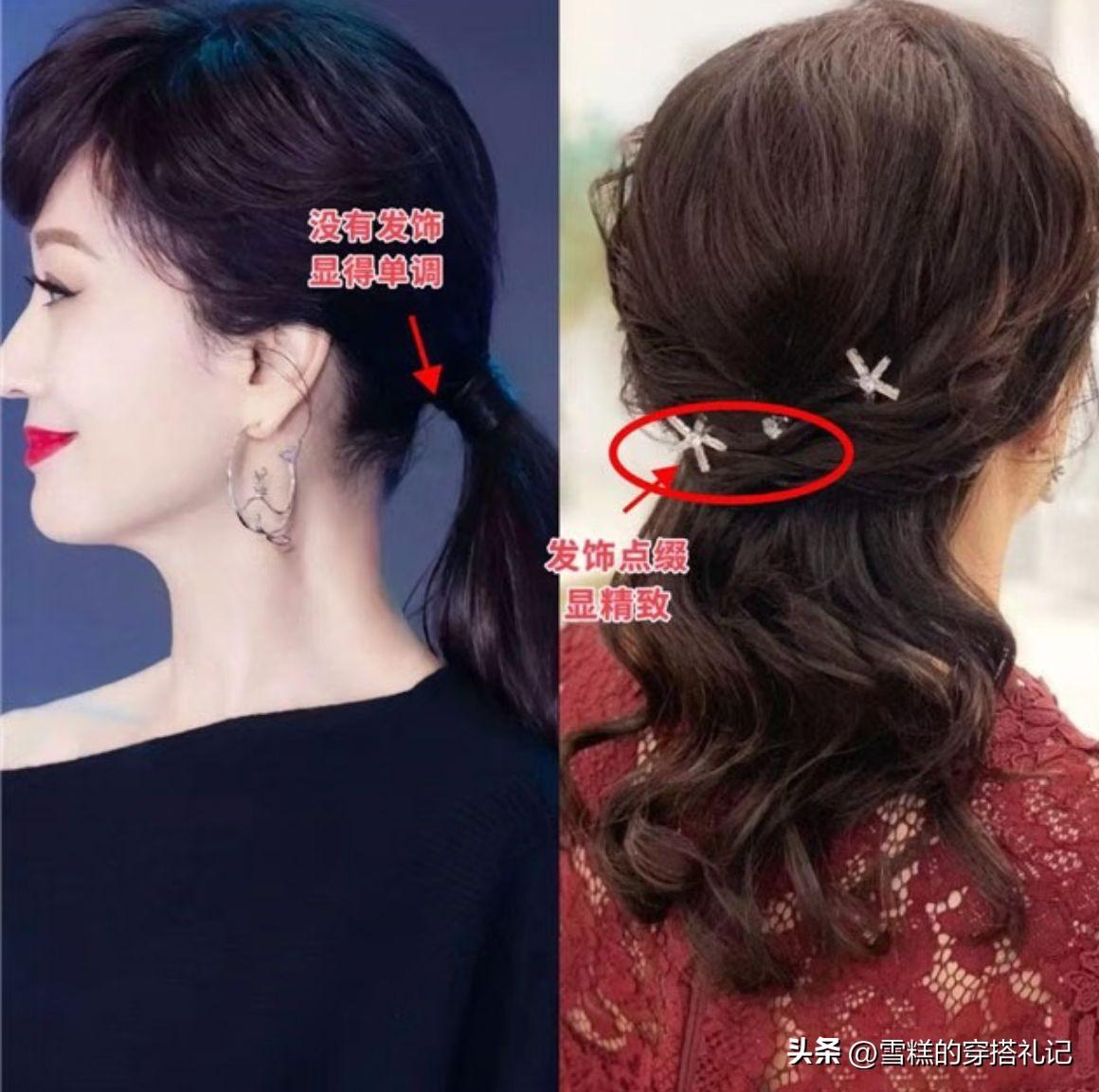 就算你的髮型選對了,如果沒有髮飾的裝點,這樣會顯得很單調,所以中年女人要學會挑選髮飾,避雷太浮誇的款式,選擇精緻小巧的髮簪、抓夾、髮夾以及髮箍,就可以讓你的髮型更精緻時髦。