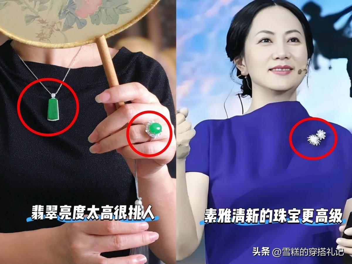 如果佩戴者的皮膚狀態不佳,那麼翡翠的光澤,就會讓你的皮膚瑕疵更明顯,在視覺上會加強年齡感,孟晚舟就非常喜歡偏素雅一點的首飾,例如珍珠、鑽石、碧璽……